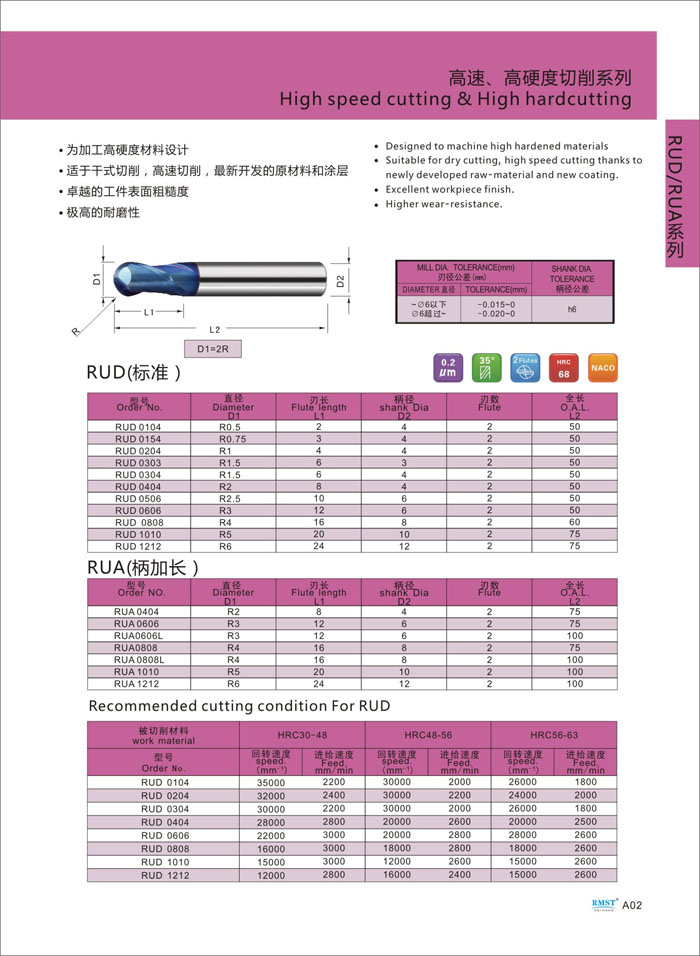 ● 为加工高硬度材料设计,HRC=68°